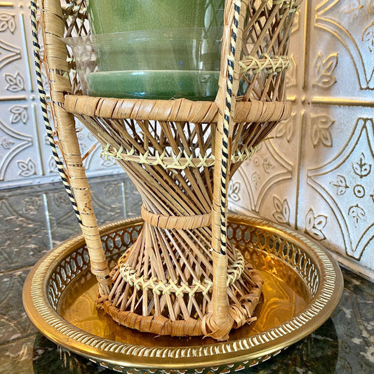 Vintage 1960s Green Glass & Brass Orchid Mister