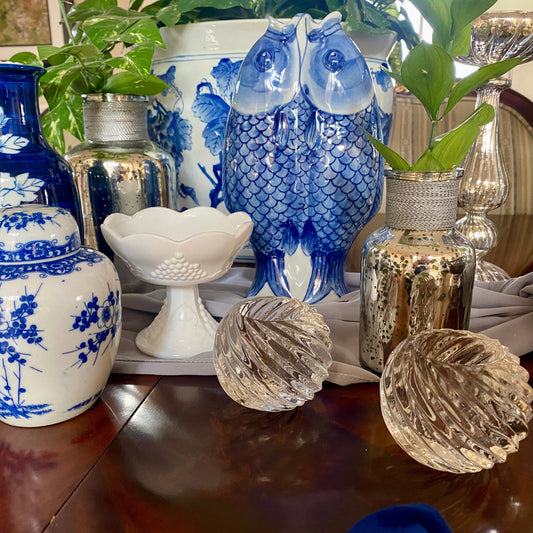 There is nothing more exciting than falling in love with a vase that sits front and center on your mantle, or discovering the perfect set of crystal goblets, or even the cutest holiday napkin rings. We try and bring to you only the most special of items- pieces that you'll love for years to come.