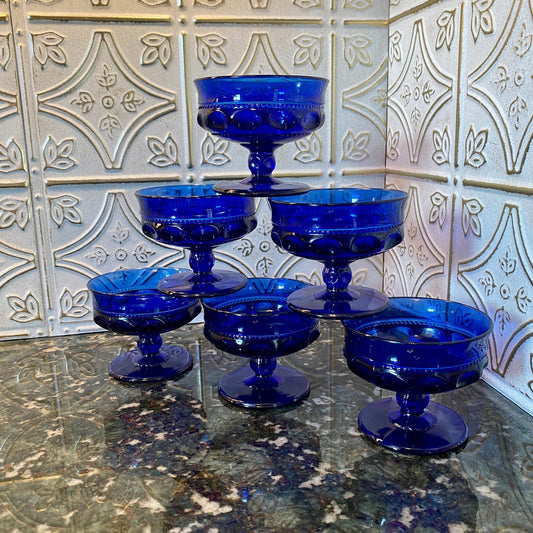 Indiana Glass Cobalt Kings Crown Sherbert Glasses/Coupes - Set of 6