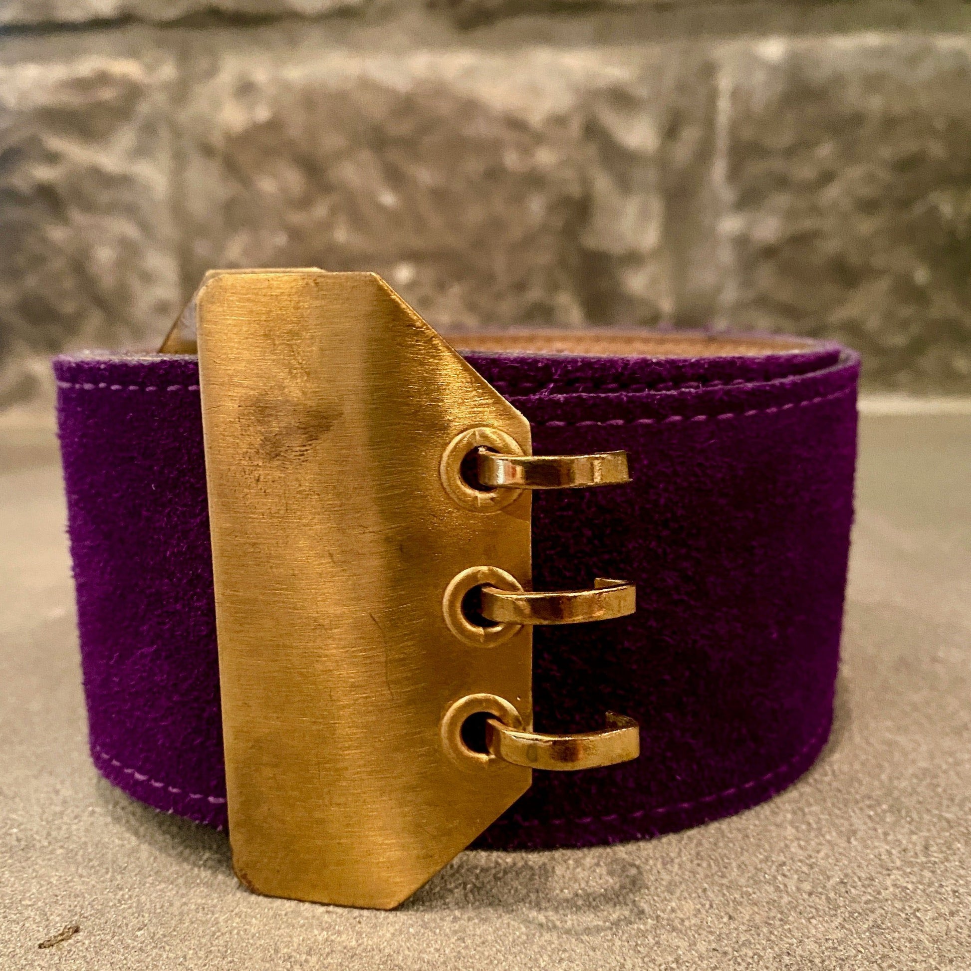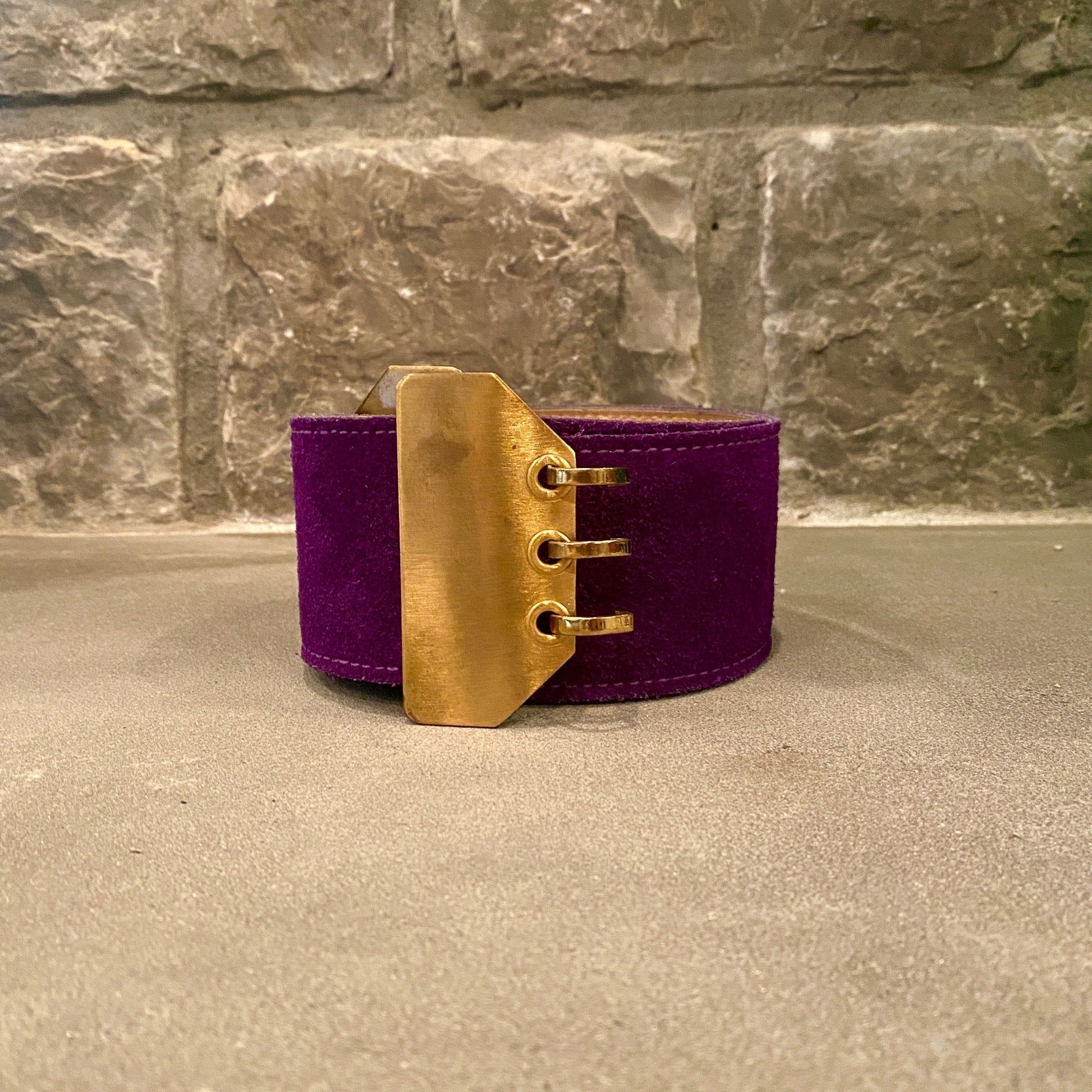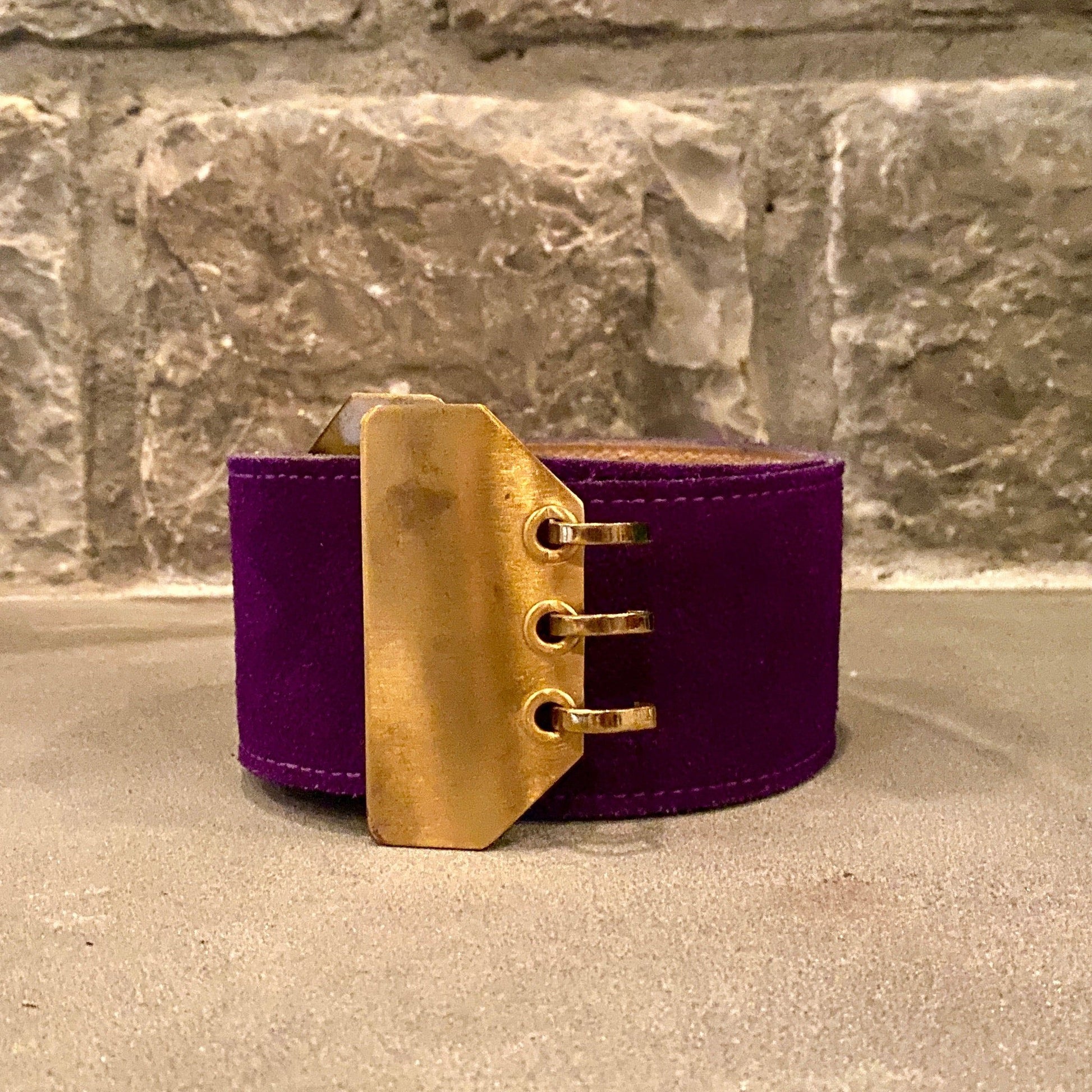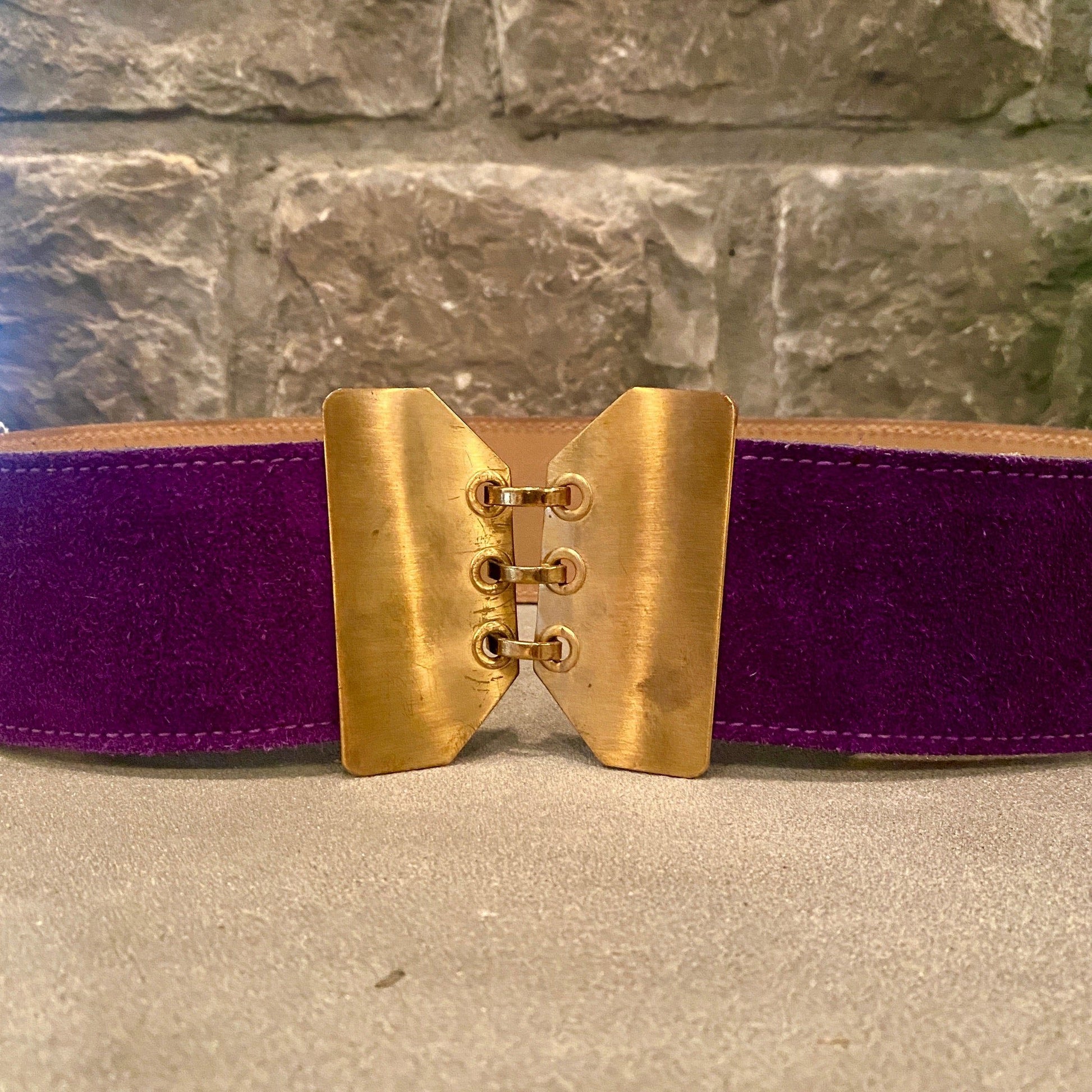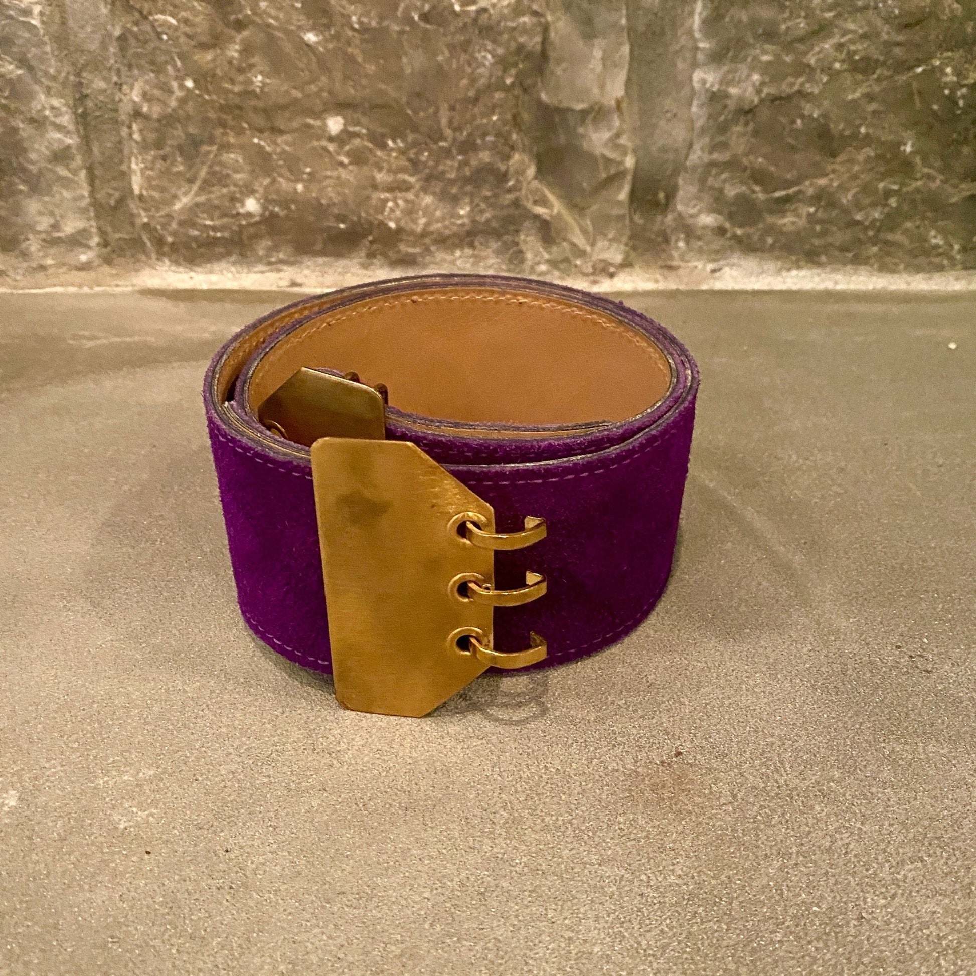 This belt gives us full on Prince vibes *cue Purple Rain*. It's fully adjustable- and the purple suede is in fantastic shape! The only wear can be seen on the metal of the buckle.