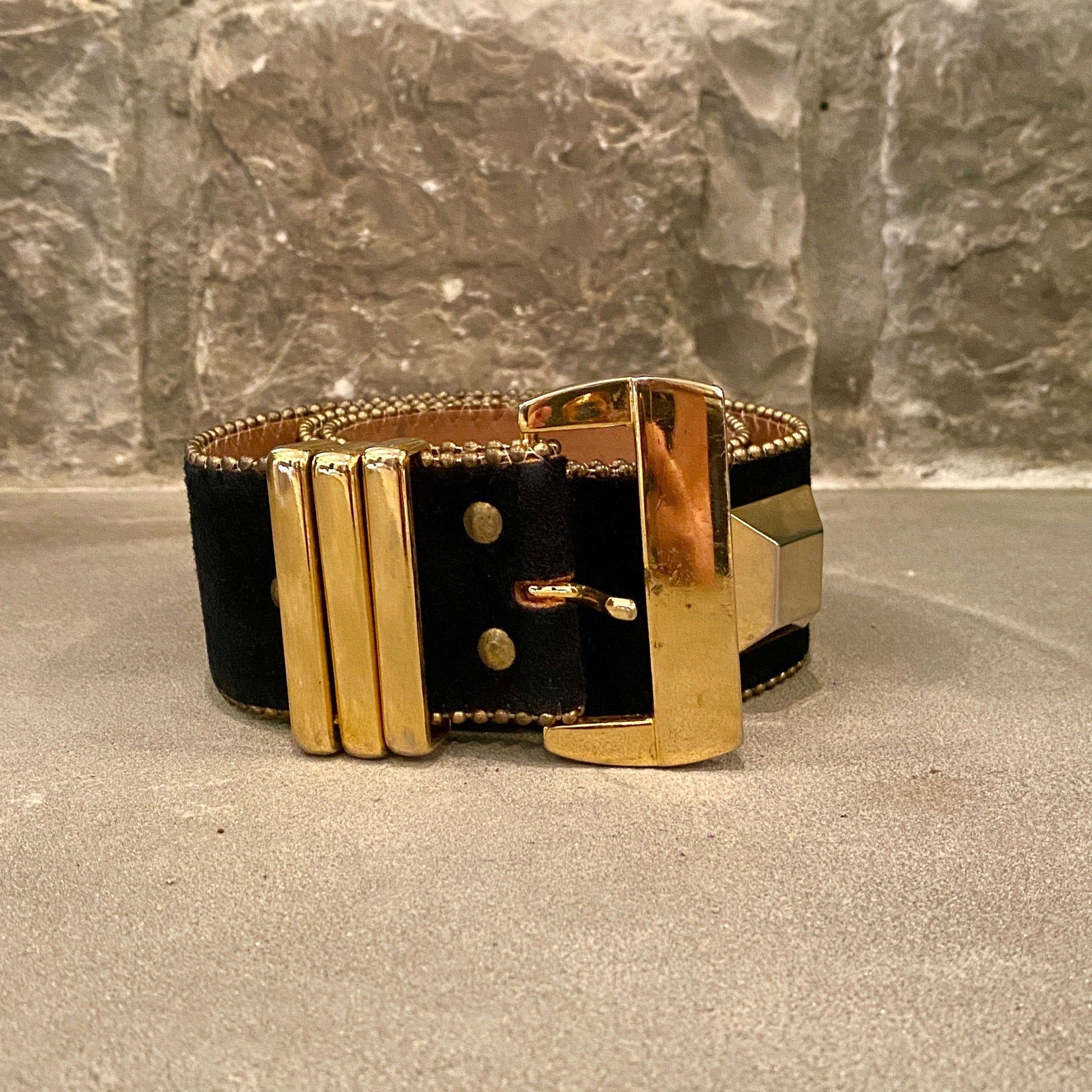 1980's Wide Suede Belt with Gold Rivets