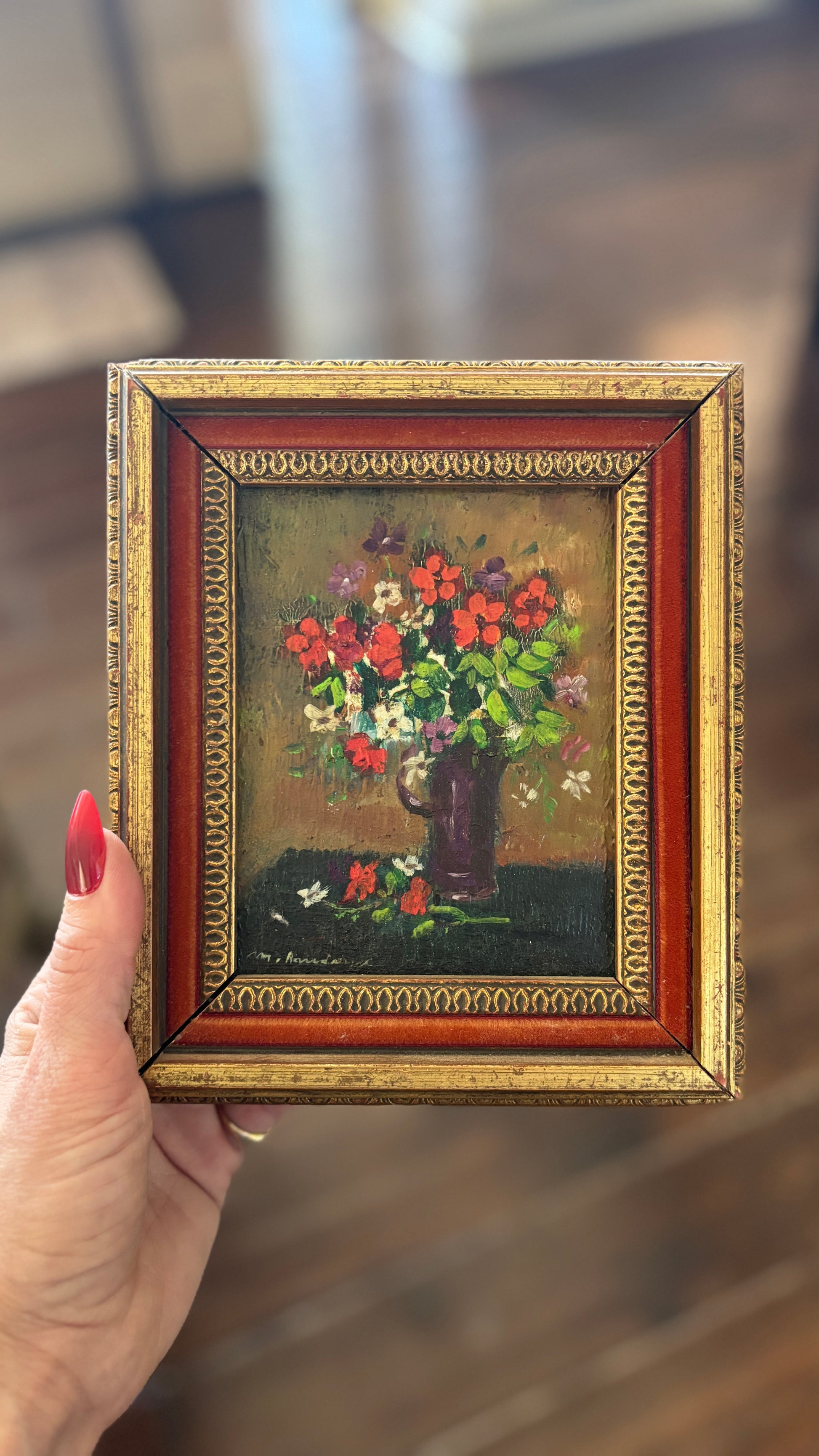Antique Original Mini Oil of Floral Centerpiece by Monique Baudaux