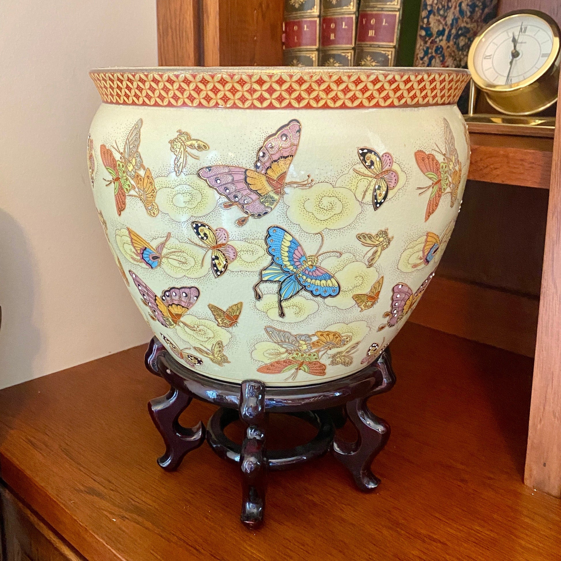 Chinese Porcelain Enamel Butterfly Motif Jardiniere Planter