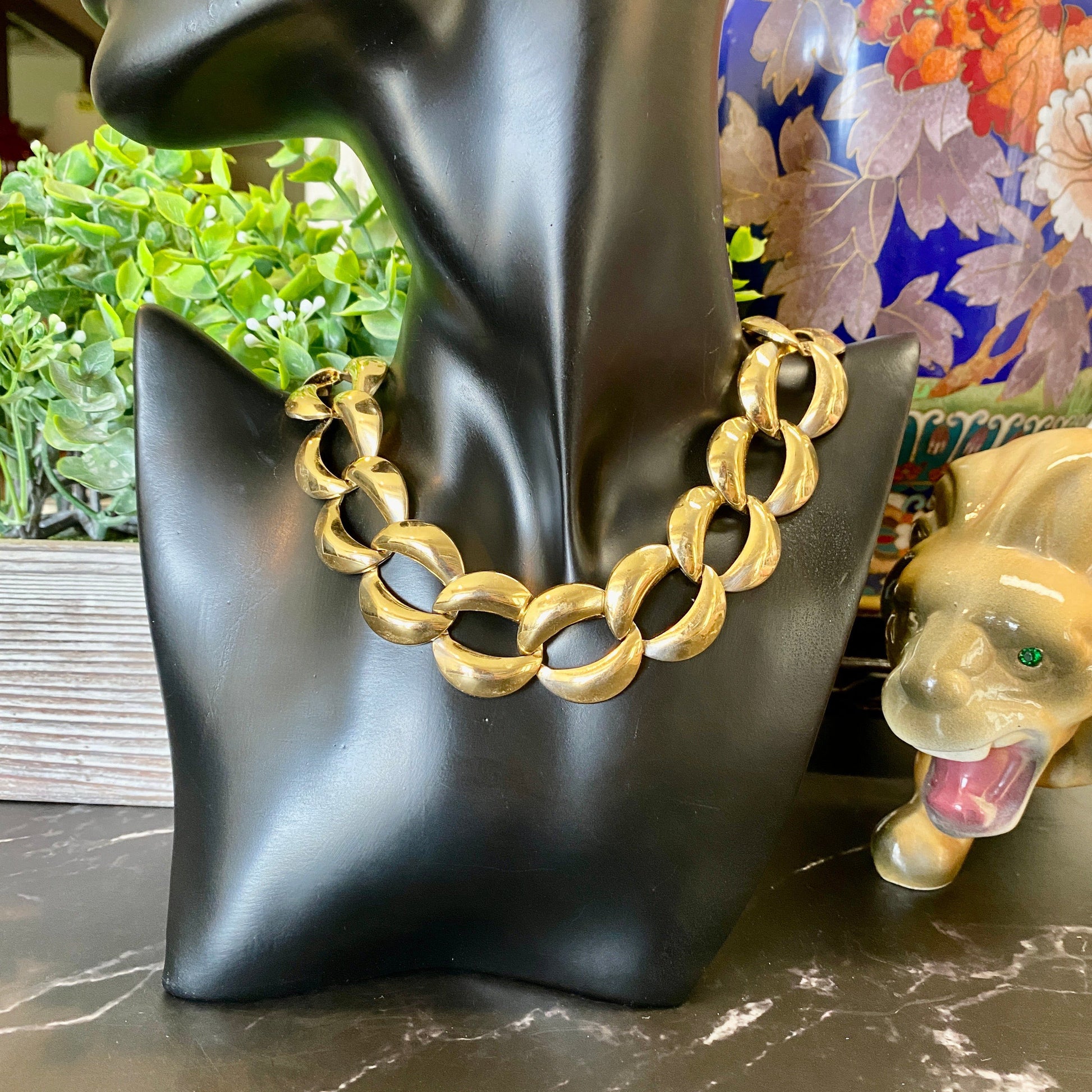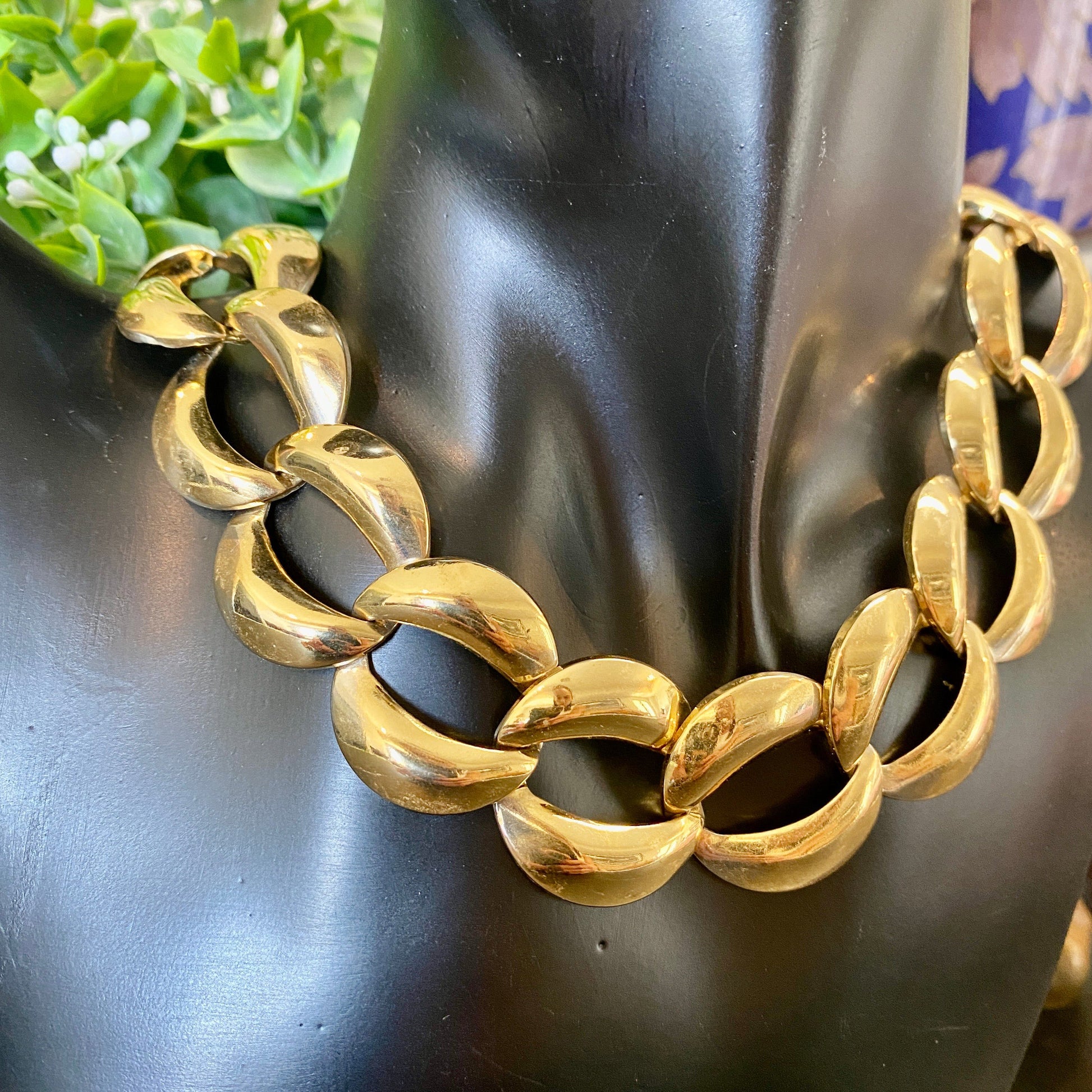 This guy must be early 80's because I'm getting a 70's vibe- no? It looks heavy (but the links are hollow underneath) so you won't get a crick in your neck by lunch. It also looks lux! Add a punch to any outfit (seriously any outfit, tee, gown, pajamas- whatever) with this stand out necklace.