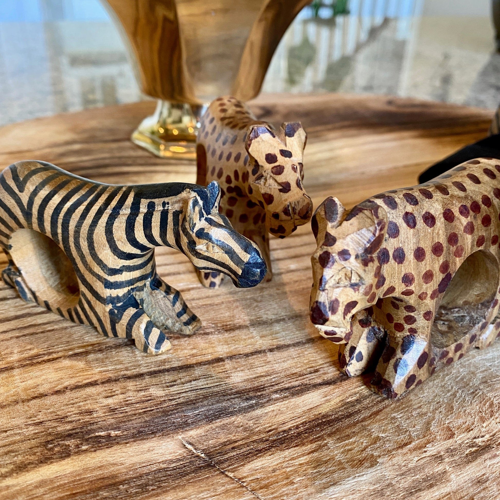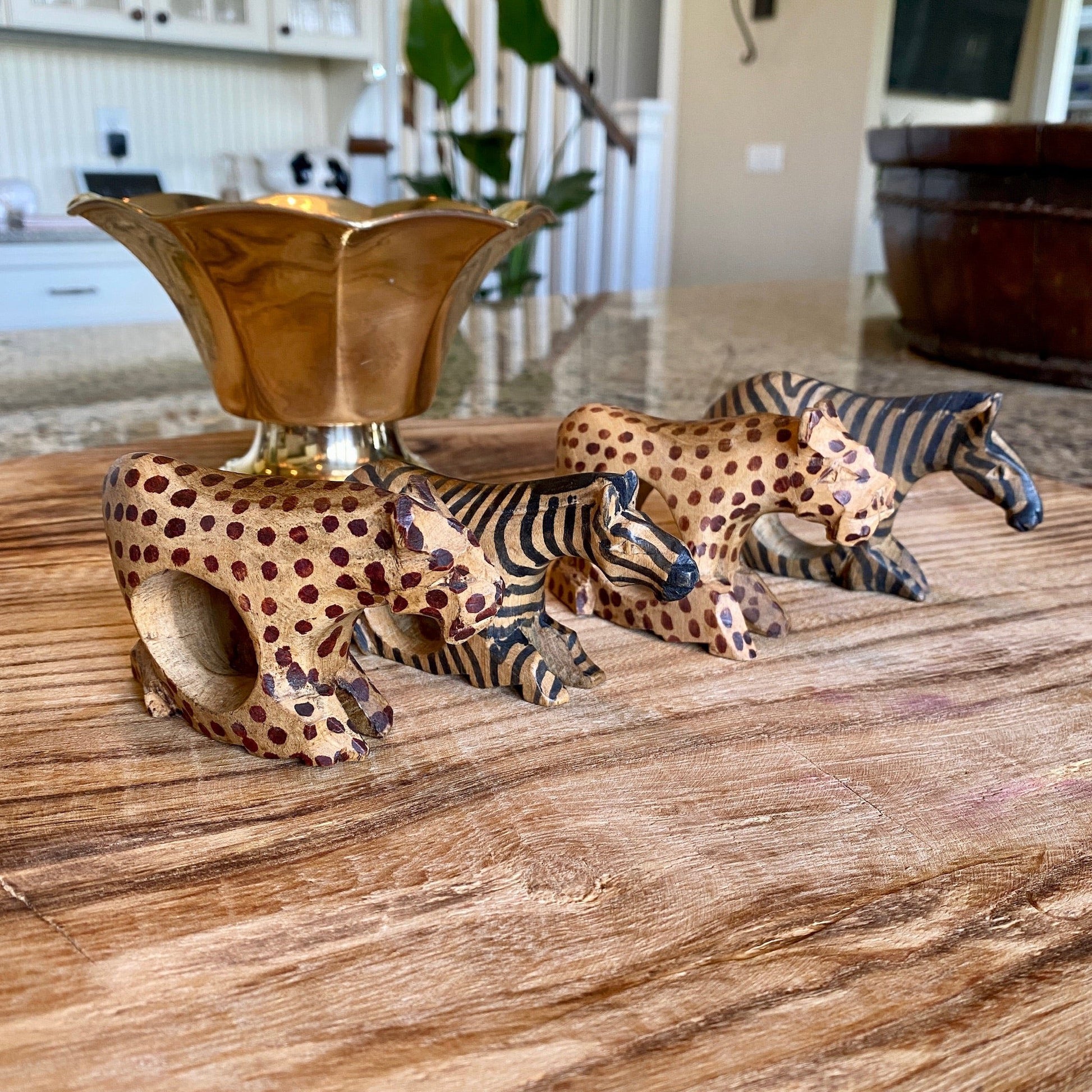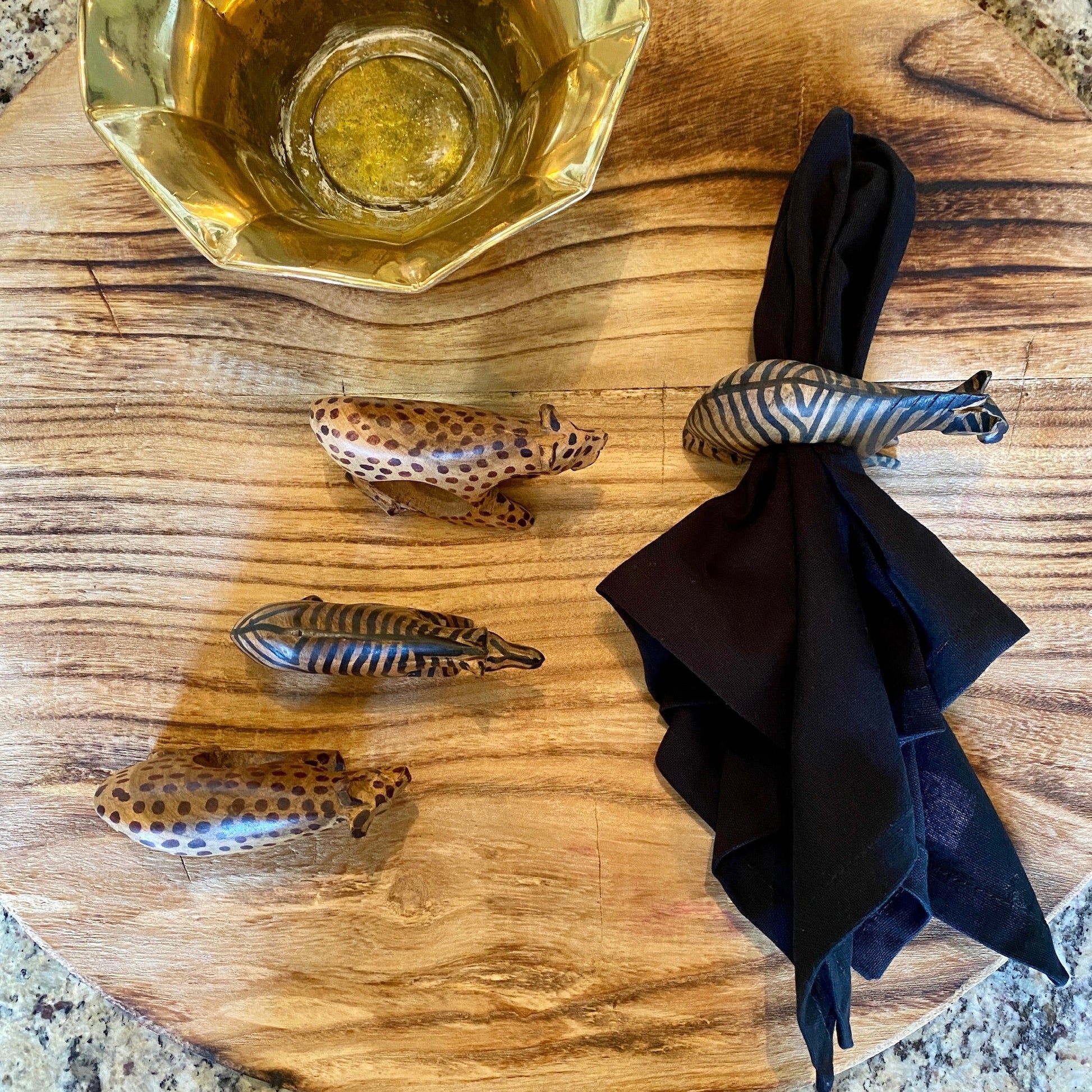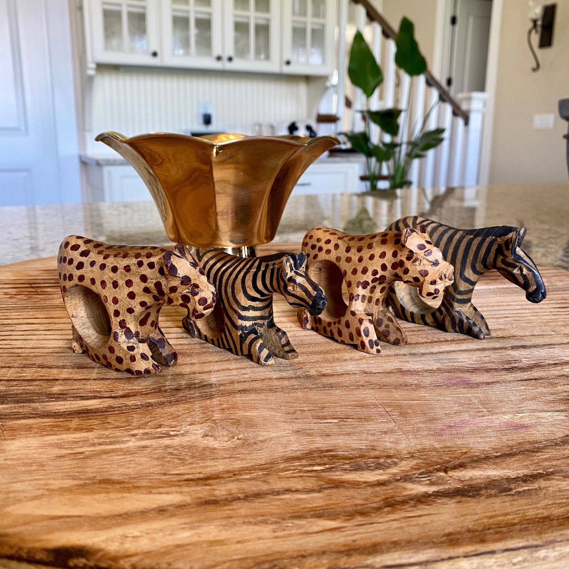 These precious napkin rings are little works of art! They were hand carved and painted in Kenya, and the perfect addition to your next tablescape! Because they are hand carved, they're each a little different, but they're in excellent condition with no flaws.