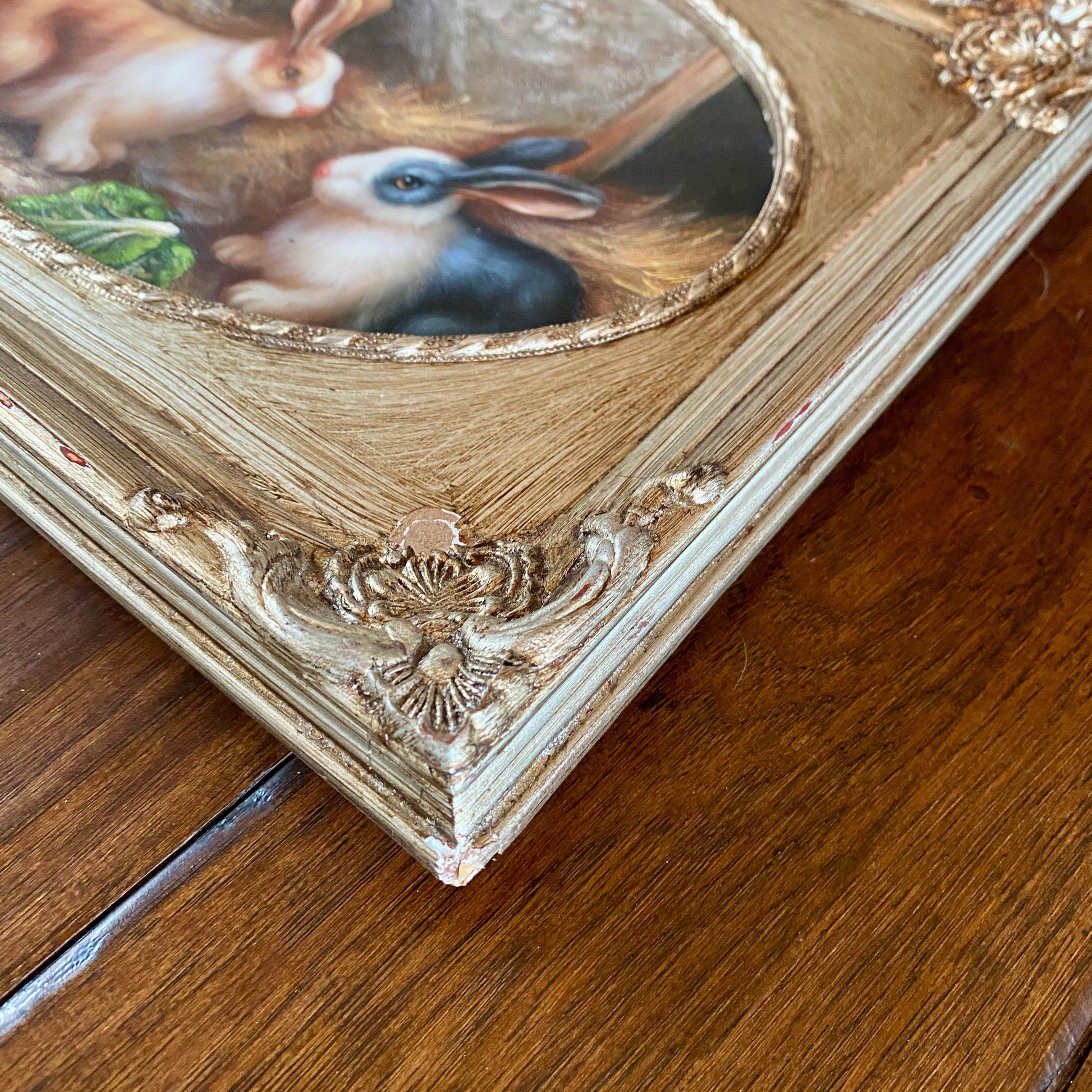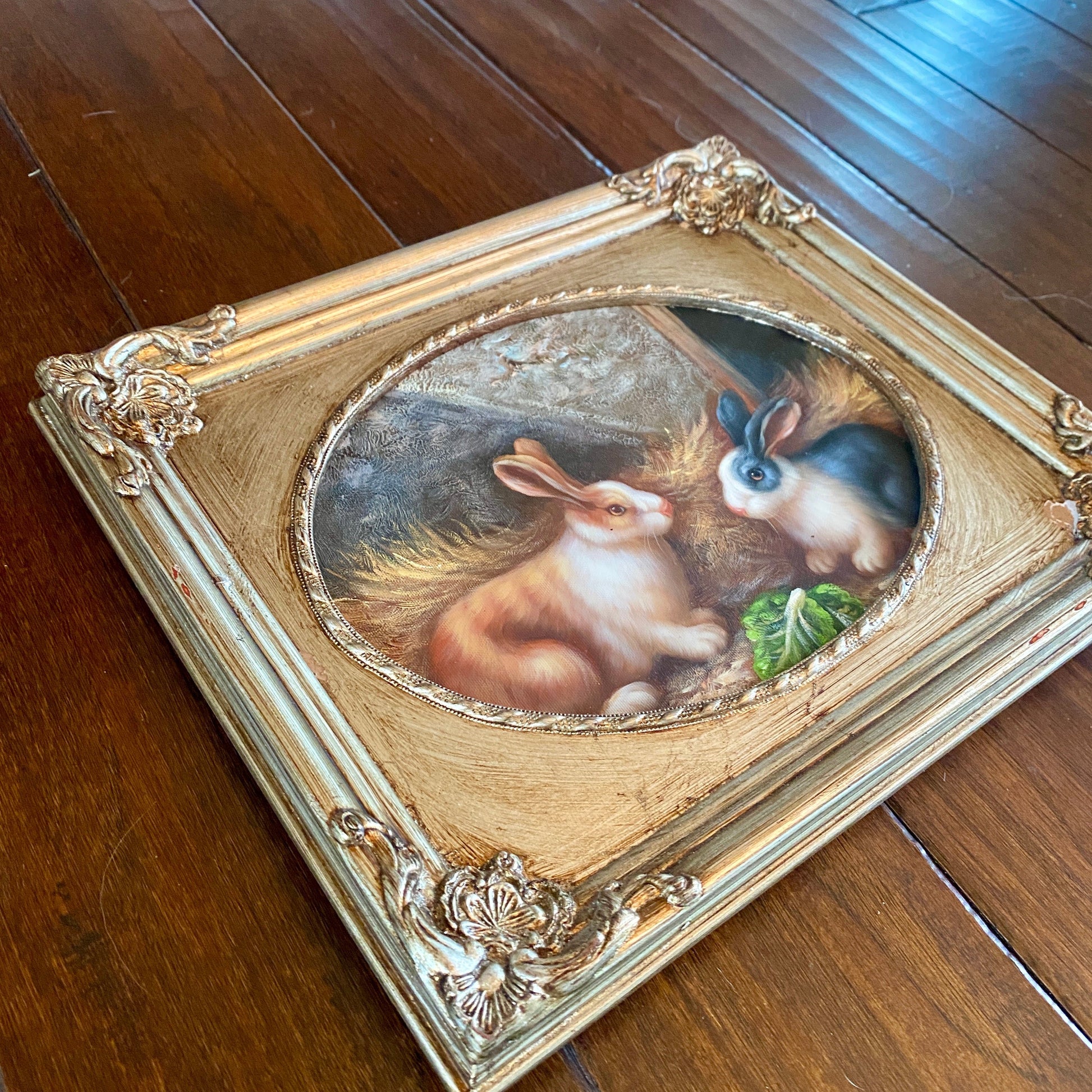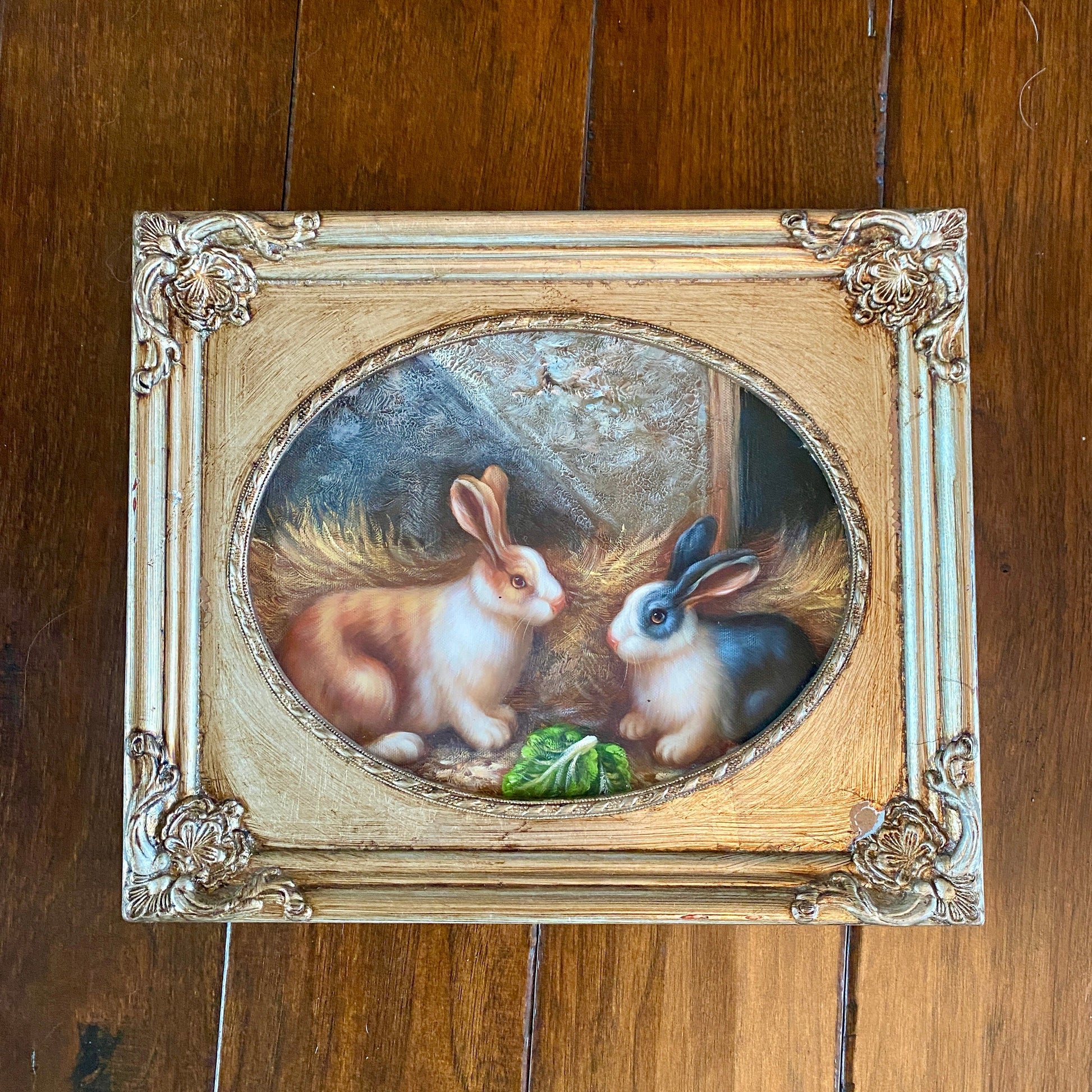 Original Pair of Bunnies Painting with Silver Frame