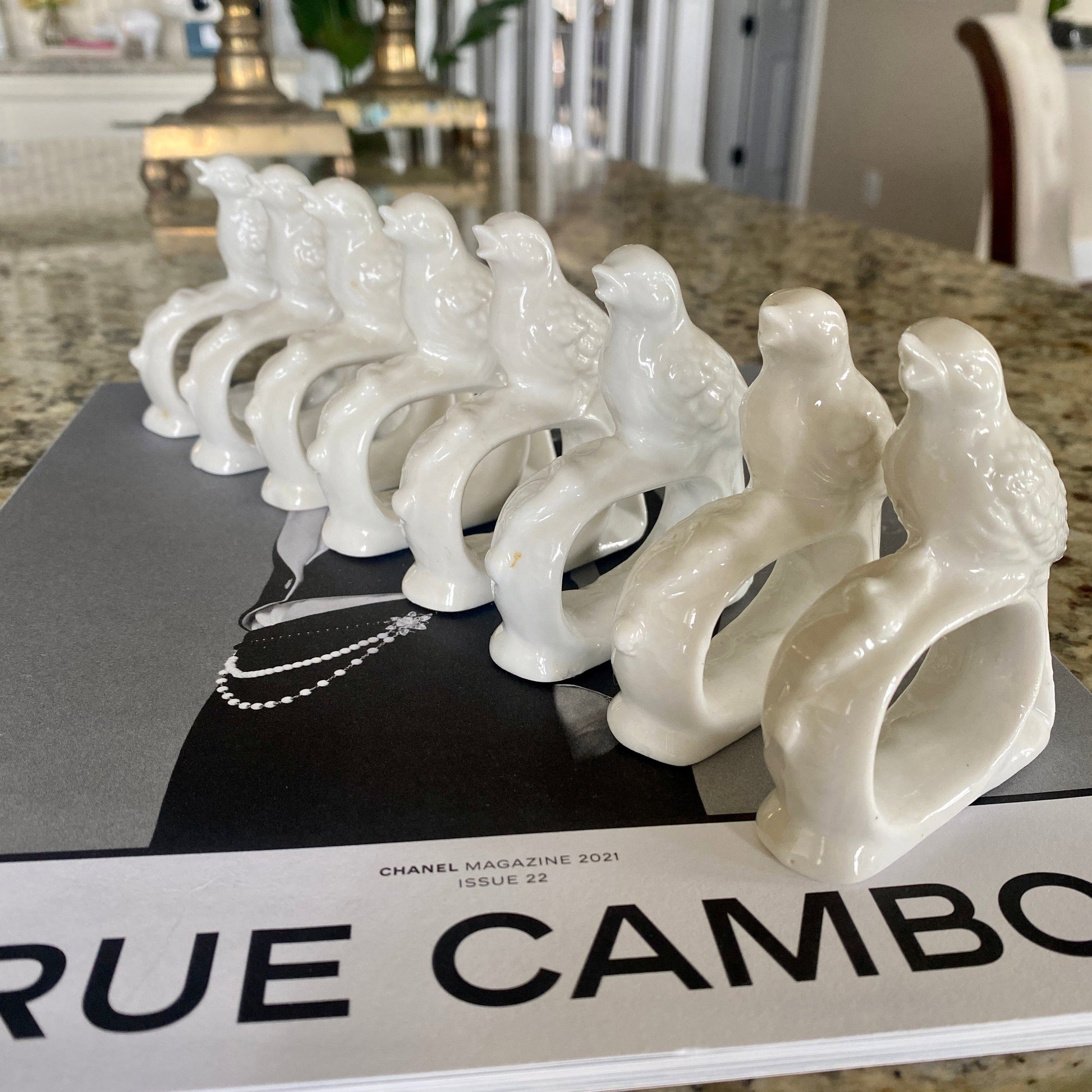 Porcelain Song Bird Napkin Rings Set of 8