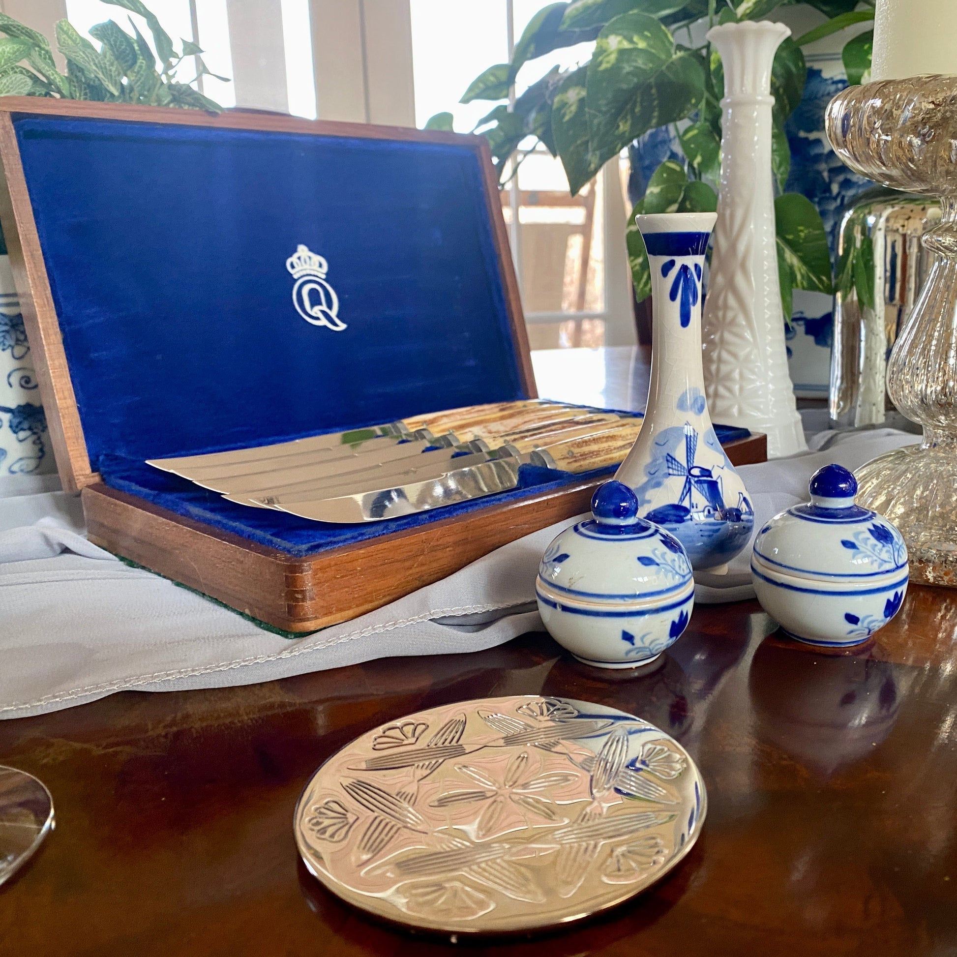 Calling all meat eaters! These Queen Cutlery stainless steel knives are in excellent shape! The logo dates these between 1932 and 1955, so they've seen some dinner parties.