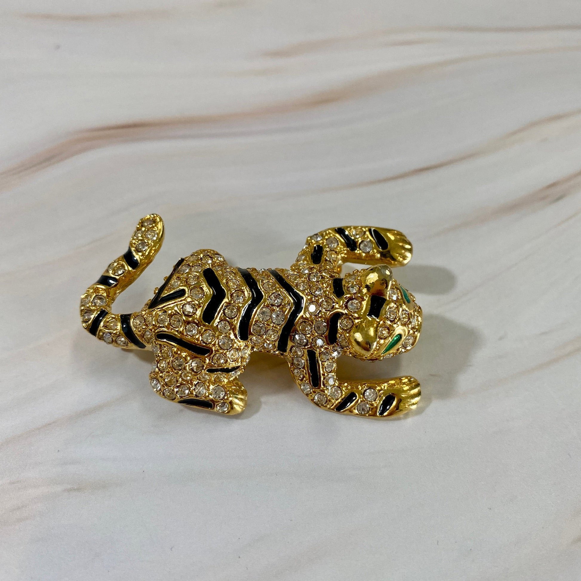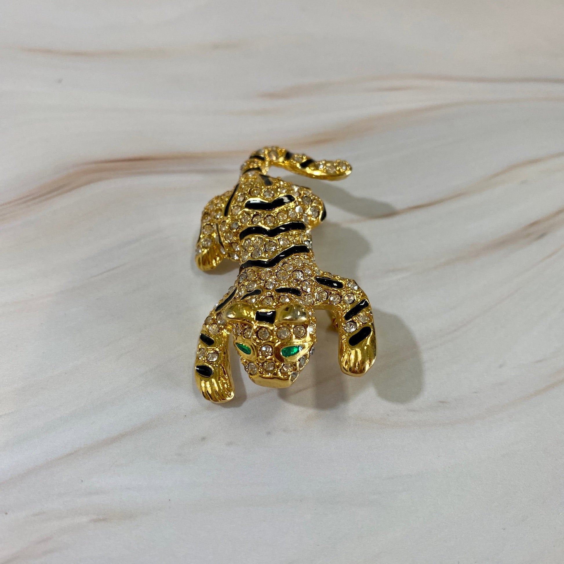 Rhinestone Tiger Brooch