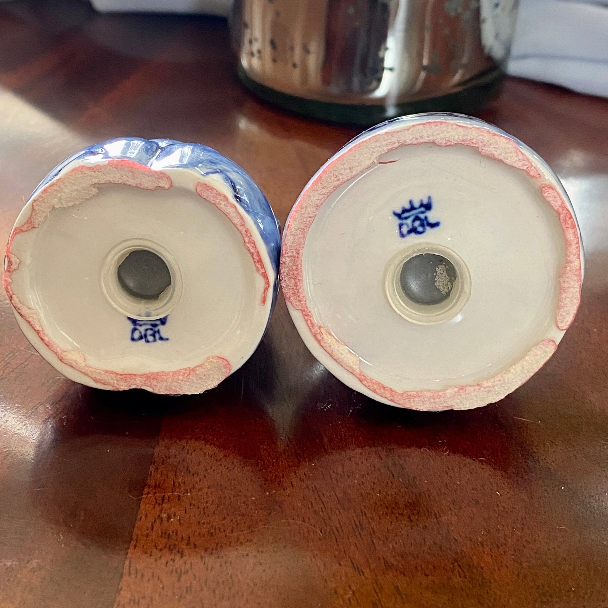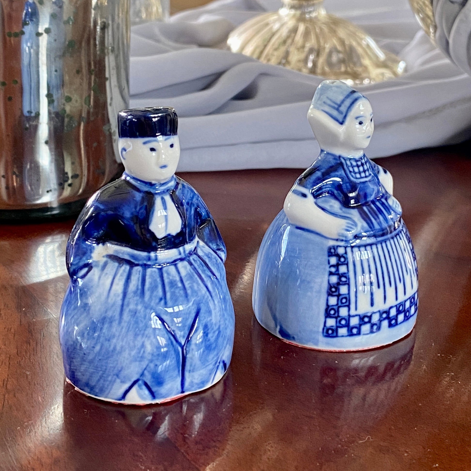 These make us giggle- especially the pronounced "crack" the gentleman seems to be sporting. But hey! What a conversation starter these Royal Delft hand painted salt and pepper shakers are! They're small and mighty, and would look great on someone's spring time table.