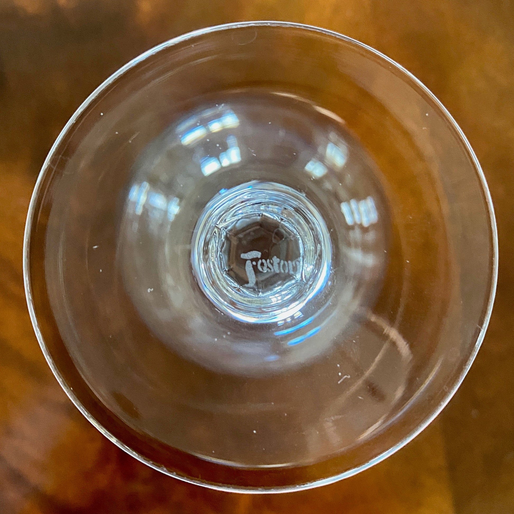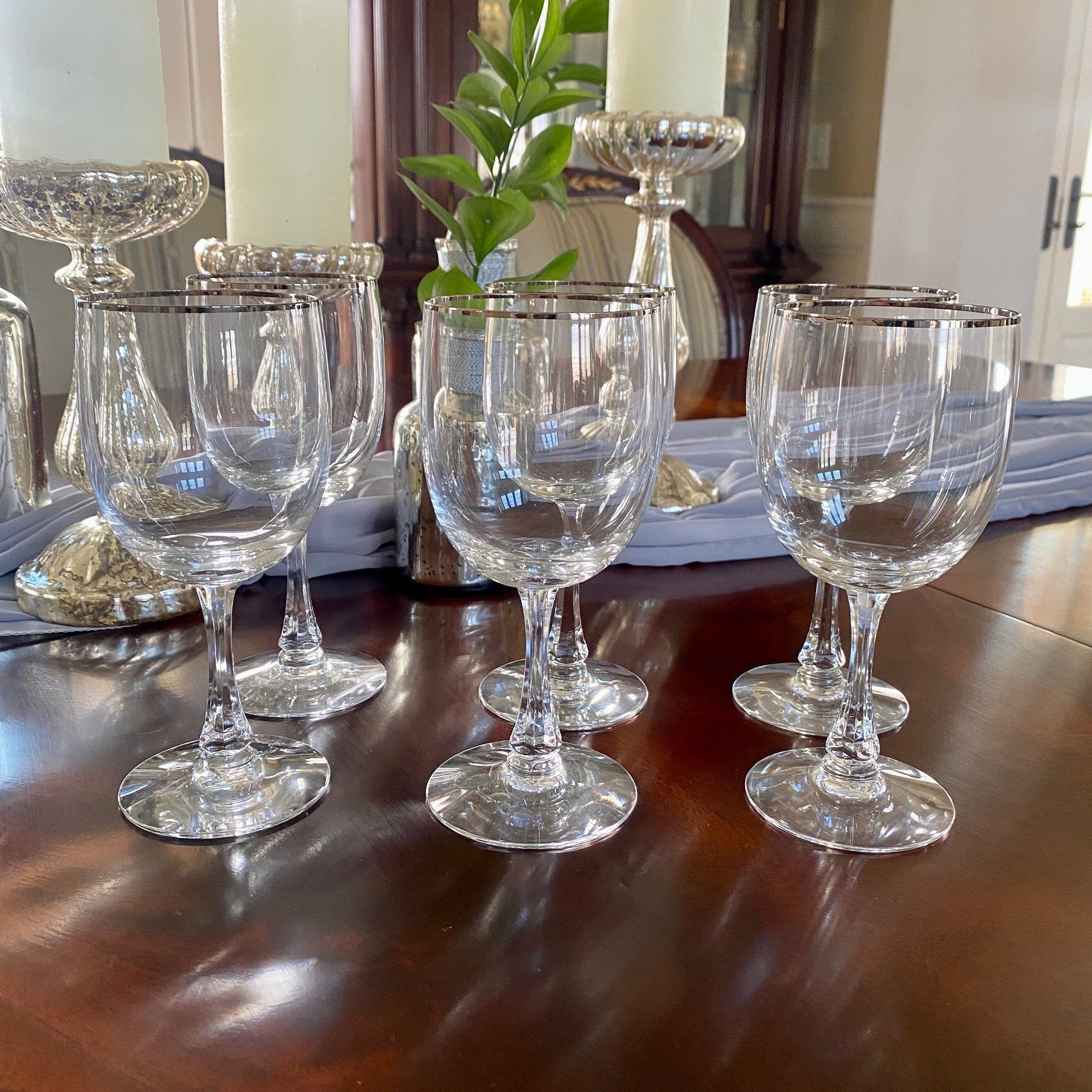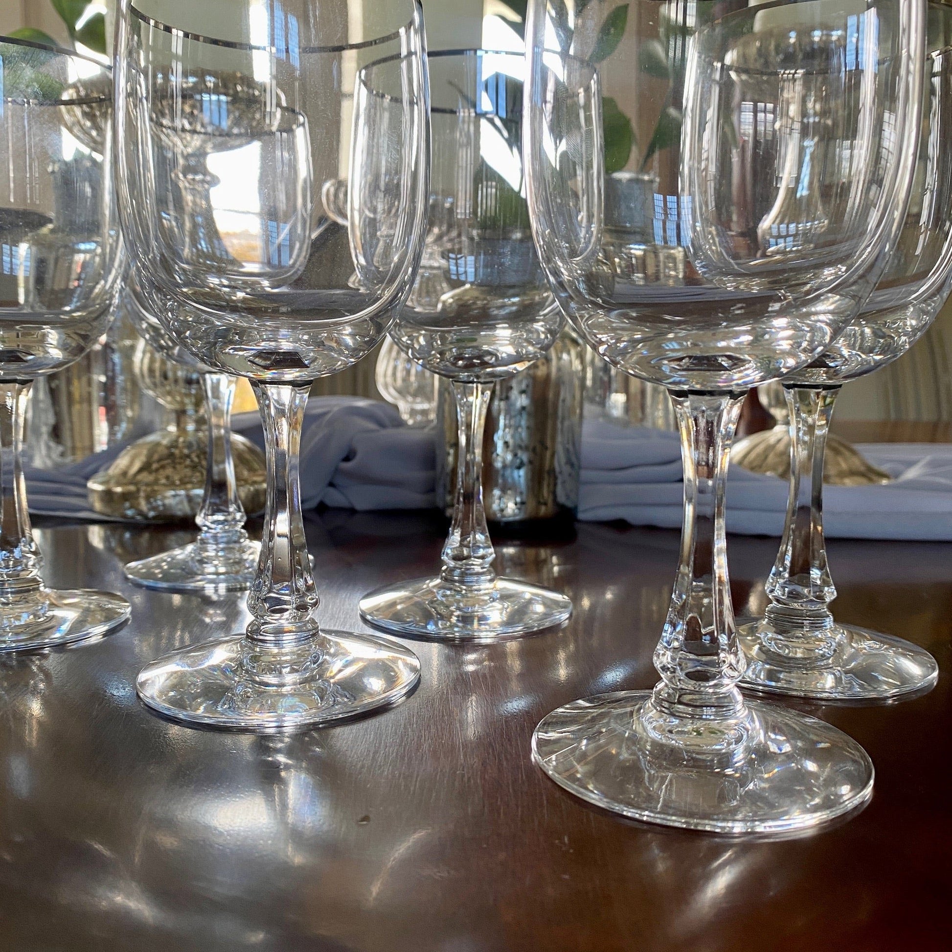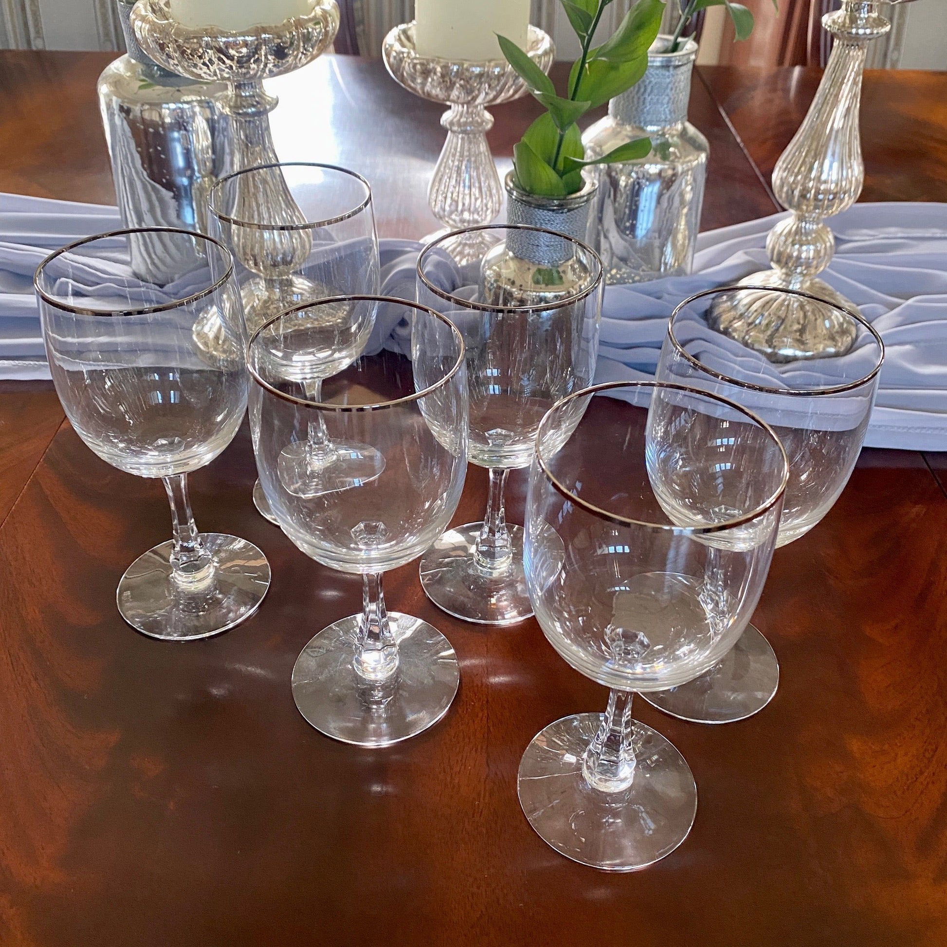 Set of Six Fostoria Crystal Wine Glasses with Silver Rim