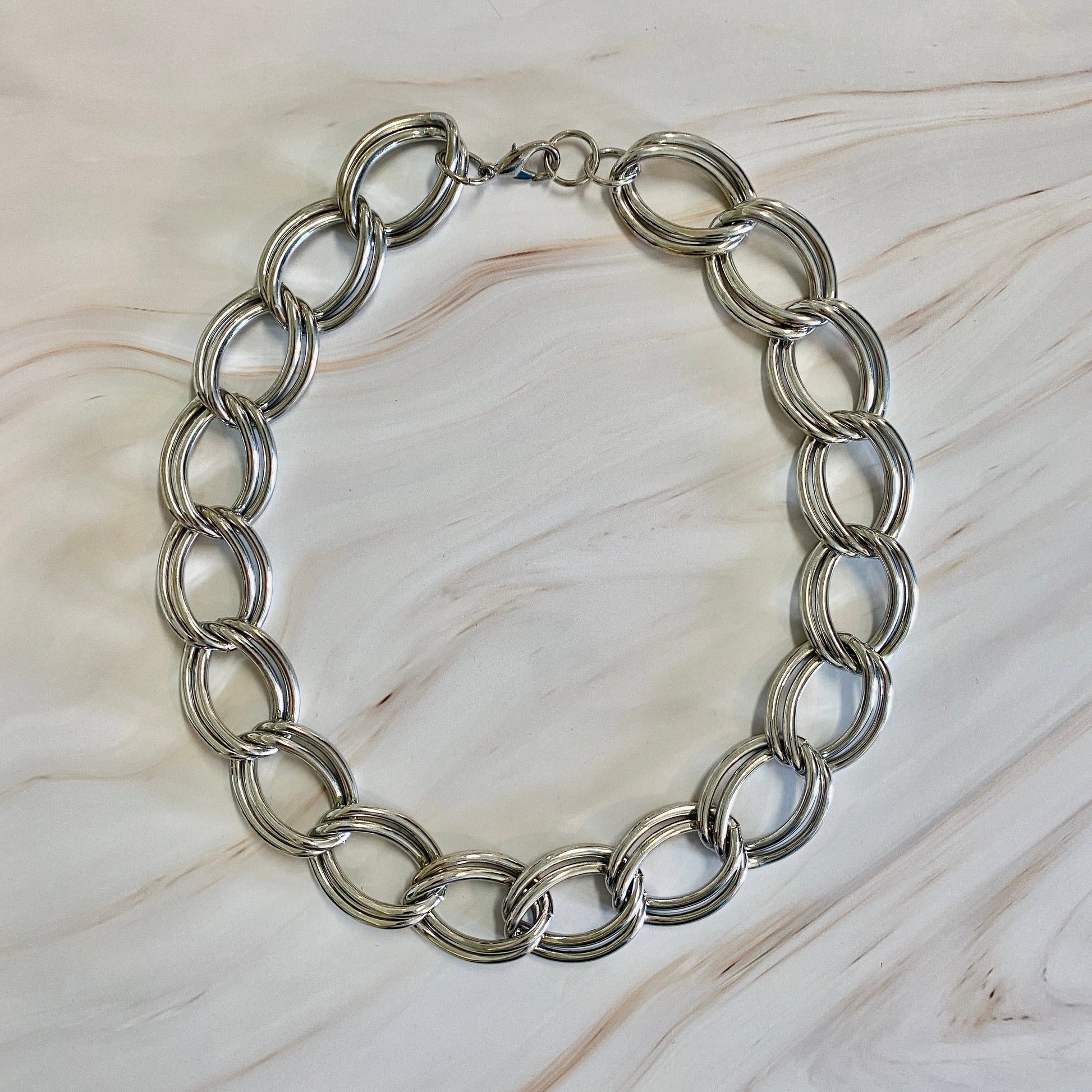 In our world gold is usually king, but we couldn't pass up this silver beauty! She's not super heavy- but the double link really makes this stand out.