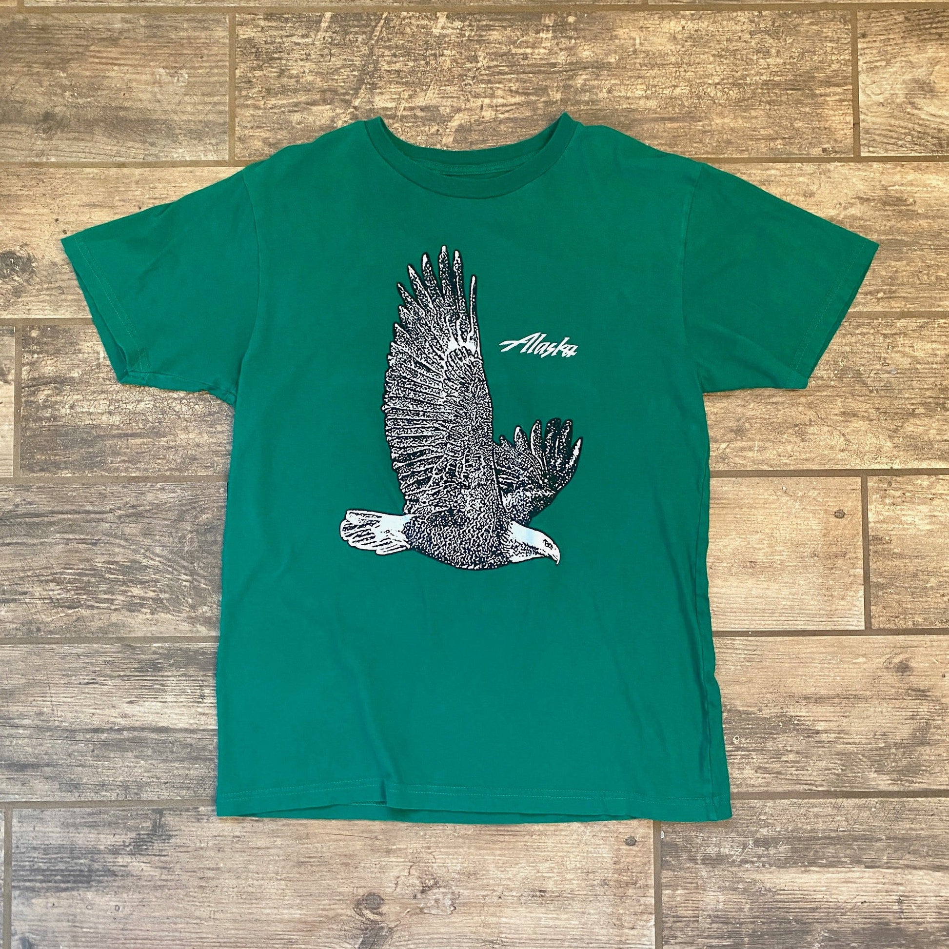 Anyone ever been to Alaska? No? Us either, but you can pretend with this ultra sweet shirt! It's the GREEN of the season, and features a dope eagle. What else do you need?